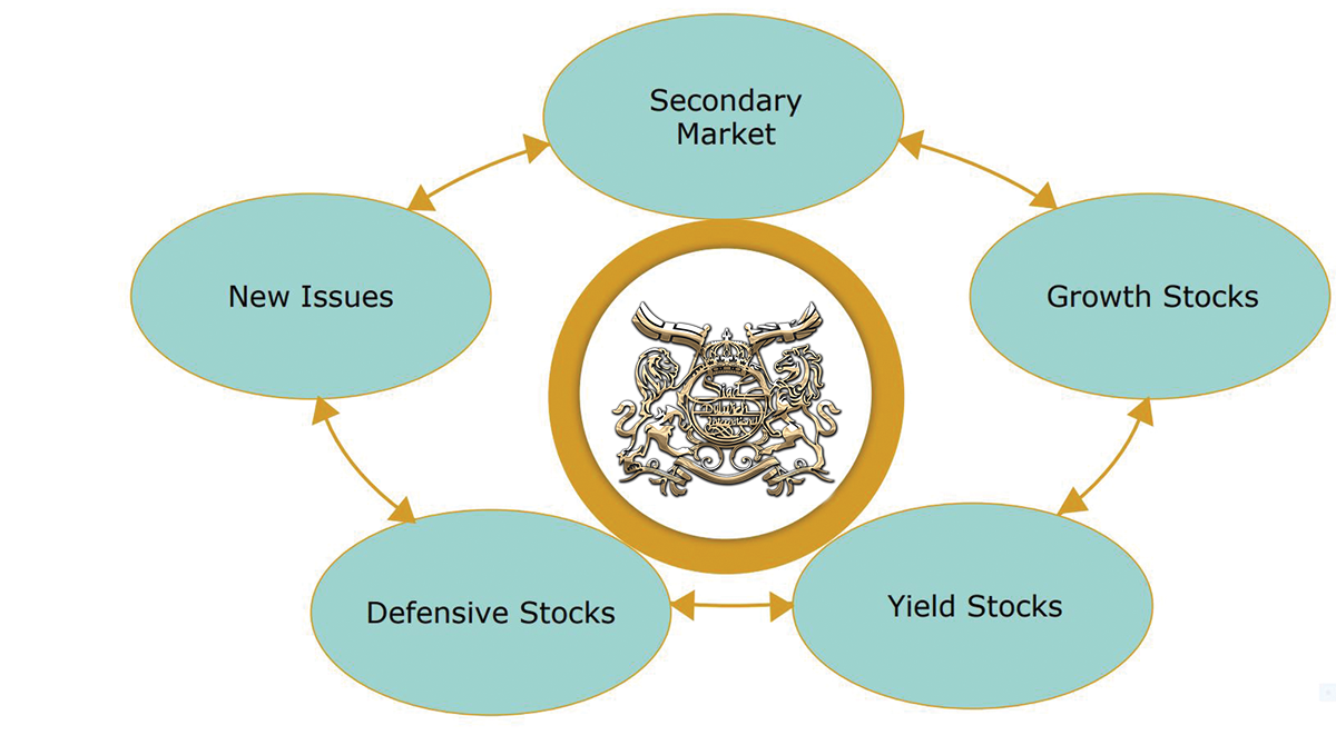 a healthy mix of value accretive shares, income generating holdings, new listings and non-cyclical stocks are likely to grow when markets are good and
